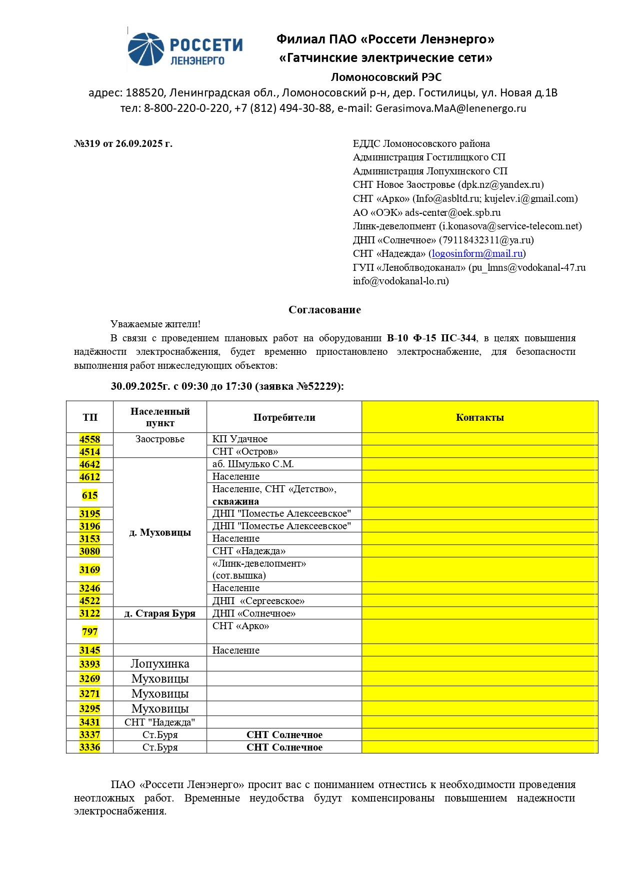 ВНИМАНИЕ : Отключение электроэнергии 30.09.2025 г. Опубликовано 29.09.2025 в рубрике Новости Cкачать: Согласование №319 ЛРЭС ГтЭС (ПС-344 Ф-15 от ТП-750 на 30.09.25)...pdf_page-0001Согласование №319 ЛРЭС ГтЭС (ПС-344 Ф-15 от ТП-750 на 30.09.25)...pdf_page-0001Согласование №319 ЛРЭС ГтЭС (ПС-344 Ф-15 от ТП-750 на 30.09.25)...pdf_page-0002