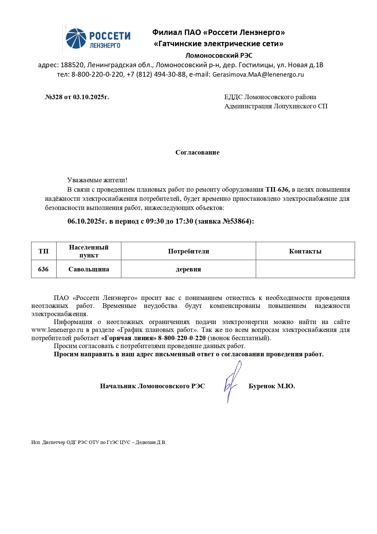 ВНИМАНИЕ : Отключение электроэнергии 06.10.2025 г. Опубликовано 05.10.2025 в рубрике Новости Cкачать: Согласование №328 ЛРЭС ГтЭС (ТП-636) на 06.10.25)...pdf (1)_page-0001