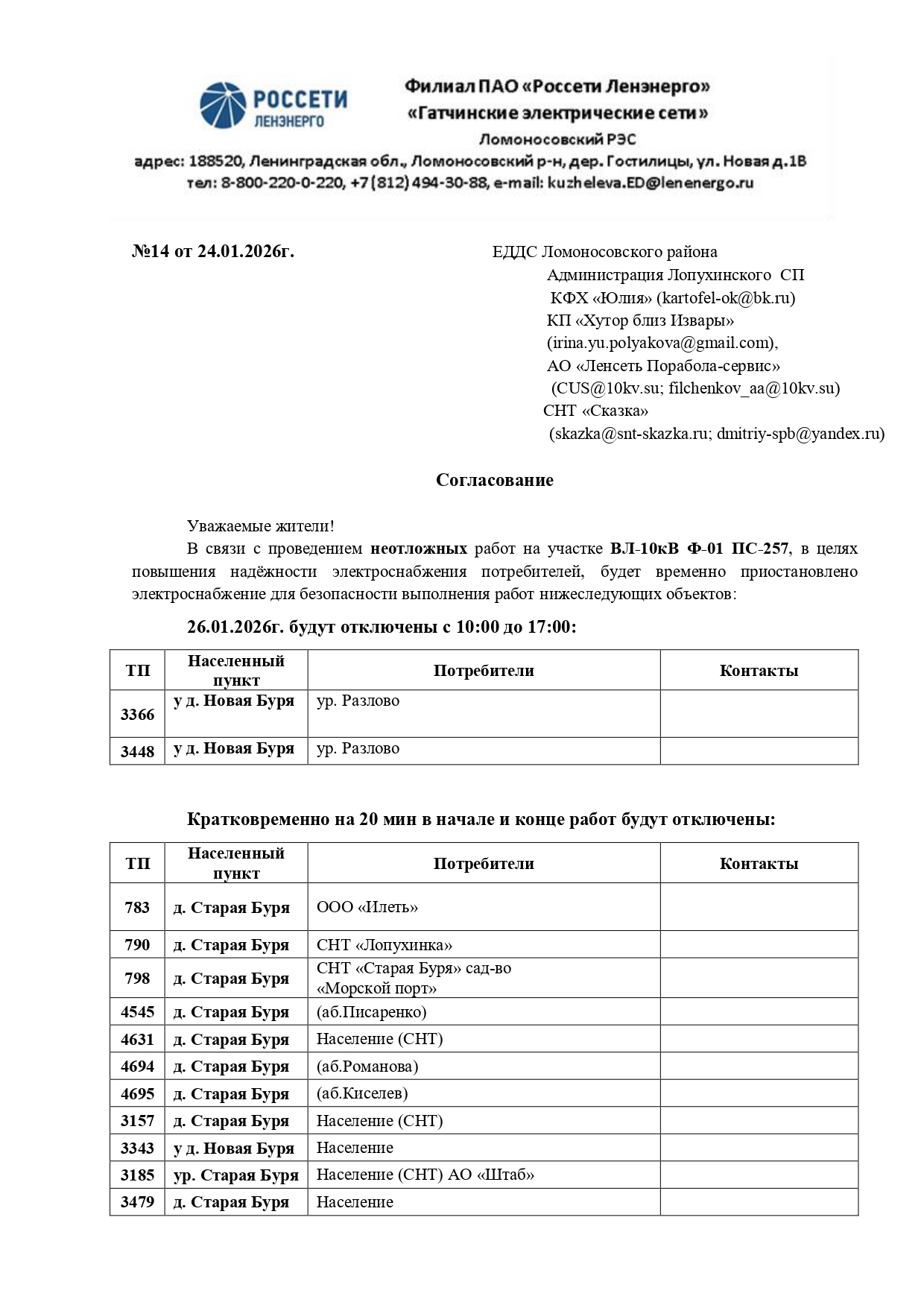 ВНИМАНИЕ : Отключение электроэнергии 26.01.2026 г. Опубликовано 26.01.2026 в рубрике Новости Cкачать: Согласование №14 ЛРЭС ГтЭС (ПС-257 Ф-1 от ТП-812 до ЛР-52 на 26.01.26)...pdf_page-0001Согласование №14 ЛРЭС ГтЭС (ПС-257 Ф-1 от ТП-812 до ЛР-52 на 26.01.26)...pdf_page-0002