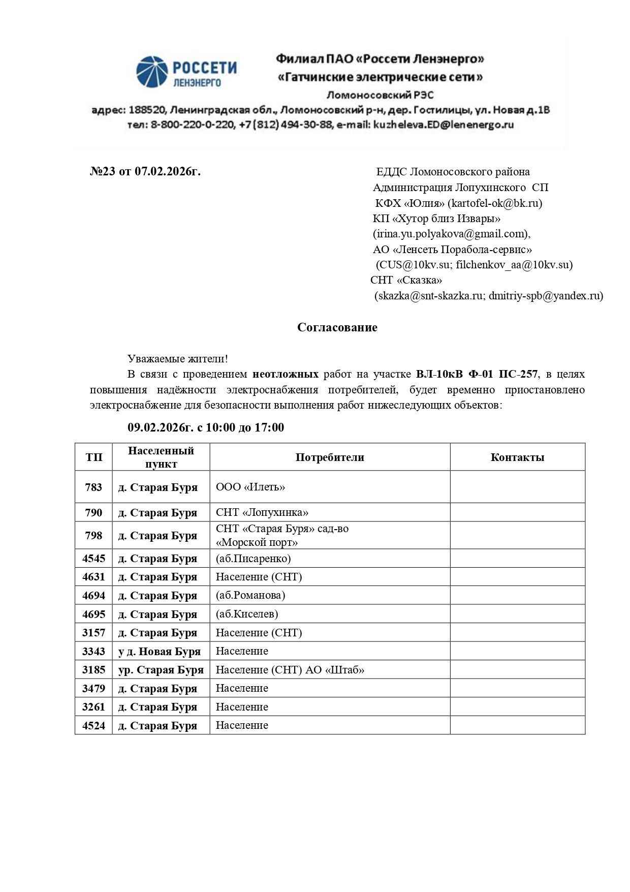 ВНИМАНИЕ : Отключение электроэнергии 09.02.2026 г. Опубликовано 09.02.2026 в рубрике Новости Cкачать: Согласование №23 ЛРЭС ГтЭС (ПС-257 Ф-1 от ТП-812 до ЛР-52 на 09.02.26)...pdf_page-0001Согласование №23 ЛРЭС ГтЭС (ПС-257 Ф-1 от ТП-812 до ЛР-52 на 09.02.26)...pdf_page-0002